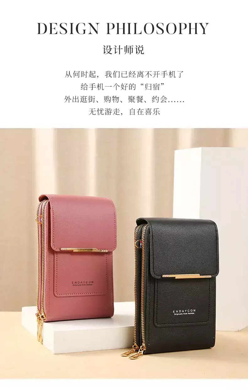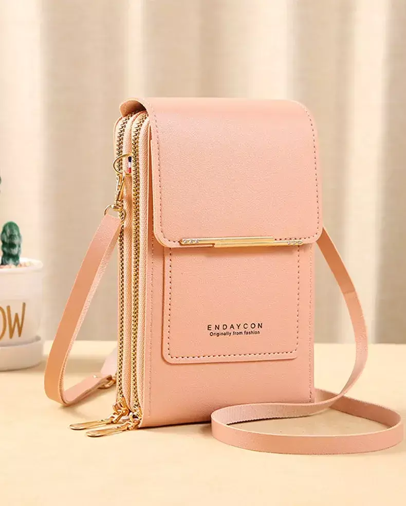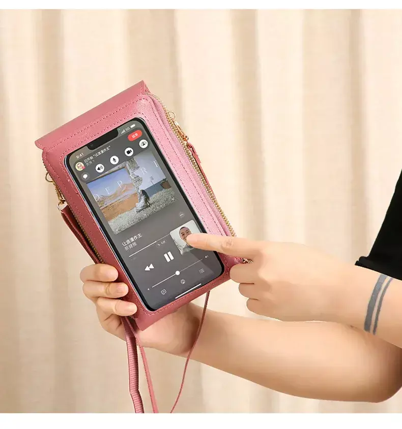 Bolsa de Ombro Transversal em Couro Para Celular Sensível ao Toque